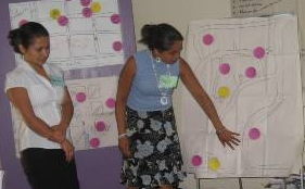 ![]() Daysi explica a sus compañeras uno de los mapas de riesgo, elaborado en las capacitaciones sobre seguridad ciudadana. |